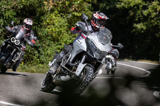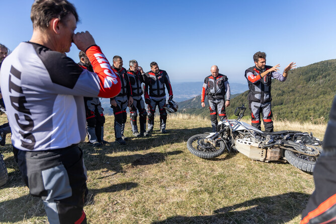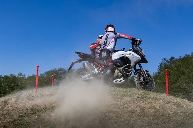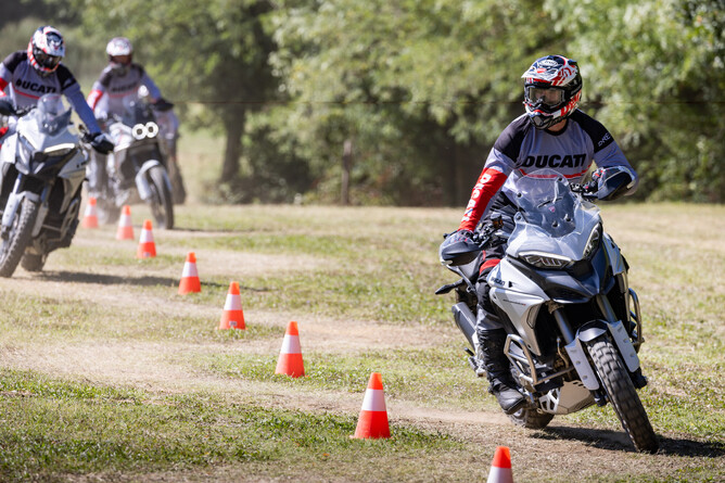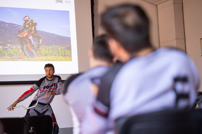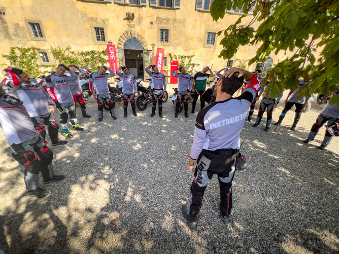 Having sipped coffee and consumed biscotti, it was time to meet the DRE team of instructors. Our chief instructor, Andrea Rossi stepped forward. He beamed confidence and enthusiasm. Andrea has competed in international motorcycle rally events and collaborated as a tester during the development of newer Ducati adventure bike models. We were treated to an inspirational video on the Multistrada and with introductions completed we were into the instructional stuff.