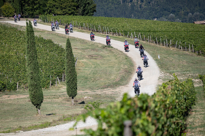 I logged onto the Ducati website with thoughts of doing a Ducati track experience in Mugello! Alas, their September courses were fully booked. Thatโs when I found the Adventure riding course at Castello de Nipozzano on the Frescobaldi winery estate in Tuscany, Italy. The home of chianti wine.