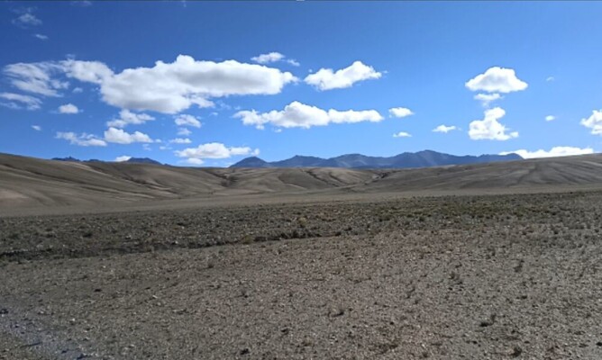 So we left Nyoma (alt 14500ft), population 53, at 5.30am, 2 degrees & dark, heading towards the monastery at Hanle, here we had to spend the next 2-3 hrs completely off-road to get around the military checkpoint, they would have stopped us & sent us packing. This route was so desolate, a desert completely in the middle of nowhere..We managed to navigate our way to the Chisumle Bridge & back onto the road up to Umling La.