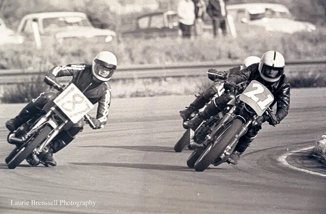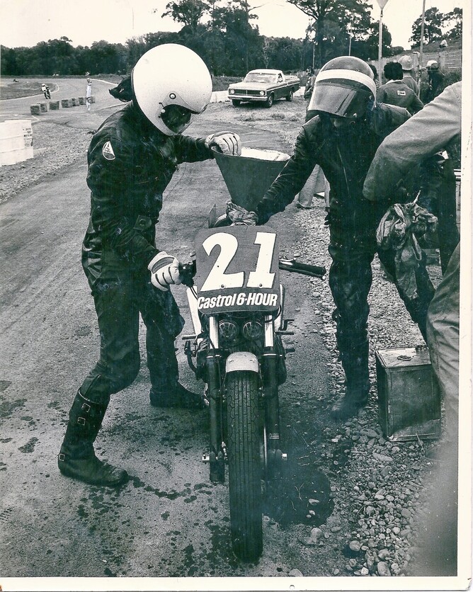 In the couple of years racing, Lionel had modest success on a limited budget compared to works teams and fellow sponsored riders. In the Castrol Six Hour race, he, along with his co-rider (whose name I have unfortunately forgotten), got a midfield placing, not bad considering they had to change a front tyre and re-bleed the brake mid-race. Their fuel stops were also a bit slow, not having any fancy overhead fuelling system, just a big funnel and a petrol can.