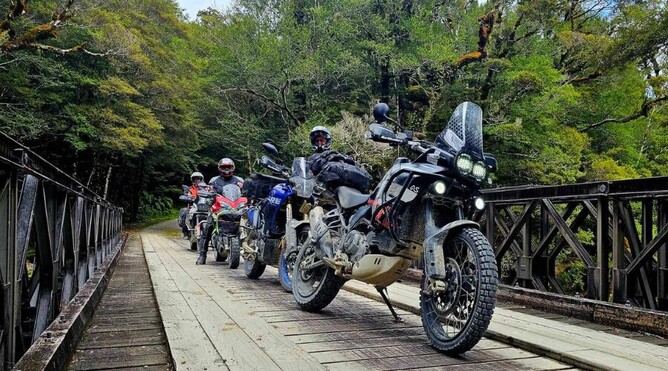 This day was predominantly tarseal to get to the West Coast, a little offroad at Lake Lyndon then onto Arthur’s Pass where we ran into the Turismo crew heading inland. At the very end of the day we had a nice offroad meander into Kumara, however Murray had a tussle with some wet track and went down. We backtracked the short way to our accommodation, keeping an eye on our fallen crew member.