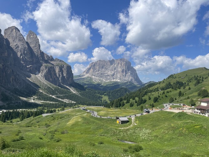 Wow. Nine passes today: Tre Croci, Giau, Staulanza, Duran, Fedaia, Sella, Pordoi, Falzarego, and Valparola pass. It sounds like a lot, but they were small ones that looped us around the Dolomites! We headed out towards and through Cortina, where the rich and famous, like Tom Cruise, Jennifer Lopez, and Iron Man, go to ski. We didn’t stop there as we were told it’s extremely expensive. Plus, Tom said he couldn’t make it as he was filming for the next Mission Impossible film.