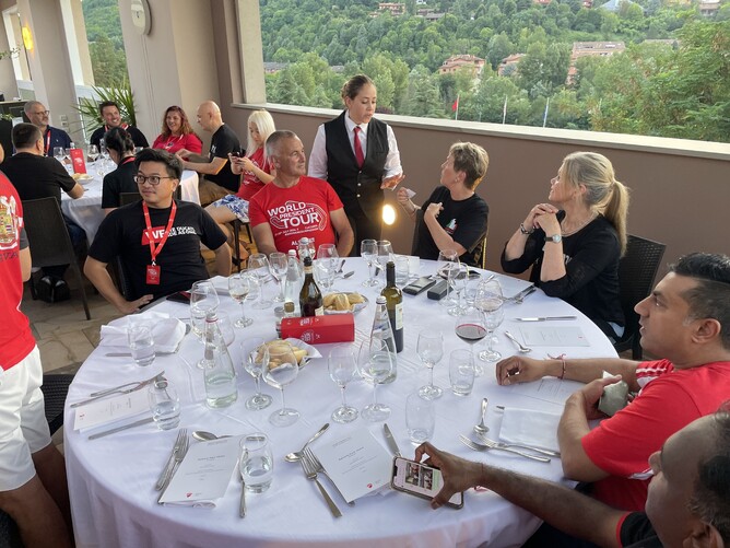 We finally arrived at the hotel with 20 minutes to spare before the bus took us to the D.O.C. President meeting. As expected, a few people were late. Then came dinner and the unveiling of the new Panigale, along with the obligatory photos. Finally, we got to bed... and a well-deserved sleep-in!