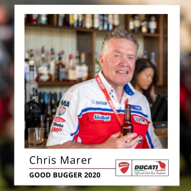 Referred to as is the DOCNZ Godfather, and our first GOOD BUGGER, Chris is fountain of Ducati knowledge, stories, and good humour.