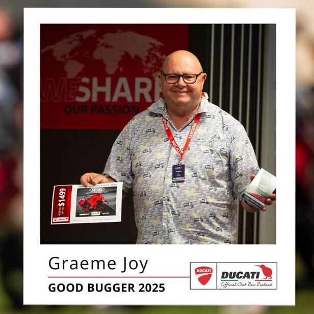 Every year, nominations open for members to shout out those who’ve gone the extra mile. The helpers, supporters, the “anything-you-need” types. The person with the most nominations is crowned Good Bugger of the Year at the annual National Ducati Rally, where we celebrate them and they also get an epic prize.